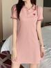 Puro Algodão Polo Pescoço Doce Idade-reduzindo vestido Verão Feminino Novo Estilo Pequeno Comprimento Médio Ombro Curto-manga T - shirt Ins