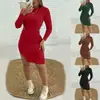 Outono 2024 novo transfronteiriço Amazon wish roupas femininas europeias e americanas cor sólida gola redonda fenda lateral vestido elegante
