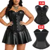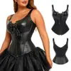 Corset Palácio de Couro Sintético PU Feminino Corset para Controle da Barriga Top Modelador do Corpo Corset com Barbatanas