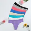 Pacote com 7 Calcinhas Fio Dental Confortáveis de Malha Canelada para Mulheres, Respiráveis e Simples, com Cós Elástico Novo Inglês