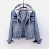 Jaqueta Curta Jeans Feminina Curta Primavera e Outono Estilo Coreano Nova Manga Longa Slim com Capuz Top de Estudante