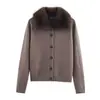 Jaqueta Suéter Europeia e Americana Transfronteiriça Aliexpress Popular Moda Pele Artificial Gola Lapela