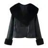 Comércio Exterior Atacado Nova Roupa Feminina de Inverno Estilo Europeu e Americano Fashionável Simples Versátil Gola de Pelo Costura Couro Jaqueta de Manga Longa