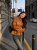 Jaqueta Casual de Couro Nova Feminina 2023 Jaqueta com Gola Alta Jaqueta Slim Europeia e Americana Jaqueta Feminina de Cor Sólida para Primavera e Outono