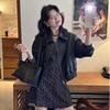 Jaqueta Curta Loose Motociclista Retrô Outono Coreana 2024 Casaco de Couro Sintético Feminino Estilo Imperatriz Curta Emagrecedora