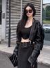 Jaqueta de Couro PU com Gola Reversível para Mulheres 2026 Novo Estilo Coreano Curto Caimento Solto Emagrecedora Retro Americano Jaqueta Biker Preta Tendência