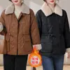 Roupas de Outono/Inverno Femininas, Jaqueta de Couro Acolchoada de Veludo Feminina, Jaqueta Acolchoada de Algodão, Roupas de Algodão Nobres Sem Lavagem para Mulheres de Meia-Idade e Idosas