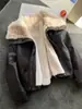 [Início do Inverno em Houston] Jaqueta de Couro com Gola Grande Integrada de Pelo Estilo Britânico com Cordão Feminina Jaqueta de Inverno N819C