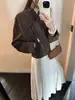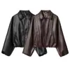 Jaqueta de Couro Fosco Estilo Popular Vintage para Mulheres, Curta Slim Cor Café Outono Rad Fechamento Diagonal Jaqueta Estilosa Top 2025