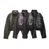 2022 em estoque zíper digging bag Preto juventude lapela zíper inverno bainha reta com capuz casaco de couro casual