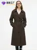 9698 Da Ai Mei Yuan 2025 Outono Antecipado Novo Estilo Feminino Longo Trench Coat com Gola Lapela, Slim Fit, Tendência de Jaqueta Feminina da Moda