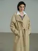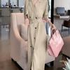 Casaco estilo coreano comprimento longo estilo britânico nova temporada outono e primavera jaqueta trench coat de alta qualidade feminina silhueta cocoon sobre o joelho cáqui