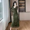 Vestido de temperamento com forro de fleece espessado, novo vestido de tricô de comprimento médio, conjunto emagrecedor de duas peças, colete de outono e inverno