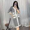 Outono e Inverno Novo Vestido Suéter Longo Slim Solto Moda Tricotado Cardigan Casual Estilo Preguiçoso Conjunto de Duas Peças
