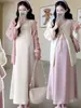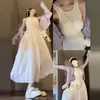 Vestido Tricô Branco Feminino 2025 Novo Conjunto Outono Estilo Francês Elegante Lindo Vestido Longo