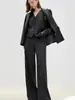 Casaco de Terno Risca Cinza Retrô de Lã Lang Yu Zi Yun Vestido Elegante Nova Coleção Primavera 2025 Senso de Alto Padrão