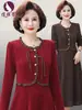 Vestido de Primavera de Manga Comprida para Mãe, Ajustado, Vestido de Casamento Elegante de Duas Peças para Mulheres de Meia-Idade e Idosas