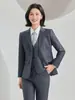 Primavera e Outono Novo Funcionário Público Entrevista Terno Vestido Colete Terno Profissional Terno Feminino Cinza Terno de Manga Comprida Terno de Quatro Peças