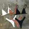 2022 comércio transfronteiriço europeu e americano cor sólida alça canelada três pontos biquíni fio dental sexy maiô maiô atacado