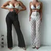 2024 Amazon Europeu e Americano Transfronteiriço Feminino Praia Vazado Calças Compridas Cintura Alta Biquíni Calças Proteção Solar Vazado Respirável
