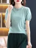 Tricô de Lã Feminino Gola Redonda Manga Curta Outono/Inverno Tricô Curto Solto Tricô Base Tricô Manga Meia Lã Tricô Tricô