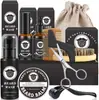 Kit de cuidados com a barba líquido para crescimento bálsamo shampoo pente dupla face escova de barba rolo prancha modeladora tesoura desinfetante