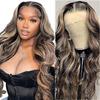 Peruca Lativ Loiro com Franja Longa Ondulada Cacheada Ombre com Raiz Escura Perucas Sintéticas Resistentes ao Calor para Mulheres Uso Diário para Festa 26 Polegadas Visite a Loja Lativ
