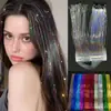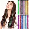 Moda Europeia e Americana Fio de Lantejoulas para Cabelo, Extensões de Cabelo Coloridas a Laser, Mechas de Cabelo Falso, Presilhas Retas Bb para Cabelo, Glitter, Colorido