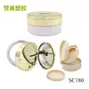 Caixa redonda de base líquida com almofada de ar, caixa de plástico com enchimento inferior para pó solto, caixa de corretivo de 2 cores, caixa de cosméticos tudo em um