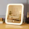Espelho de mesa inteligente com LED para maquiagem, ideal para penteadeiras em quartos femininos ou para mesas em dormitórios estudantis.
