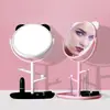 Espelho de Maquiagem de Mesa Unilateral com Orelhas de Gato Penteadeira Desenho Animado Alta Definição Espelho de Princesa Dormitório Mesa Espelho Redondo Pequeno Espelho de Beleza
