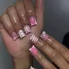 Usando um strass francês com bordas brancas Usando um remendo de unha no atacado Unhas postiças acabadas unhas pedaços de unhas unhas
