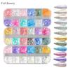 Cross-Border 24 peças de arte do prego da cor celofane papel doce folha de ouro lantejoulas saco de cor mágica aurora glitter nail art jóias