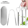 Raspador de Língua Portátil de Camada Única Reutilizável Aço Inoxidável Escova Oral para Boca Estojo Cabo Antiderrapante Raspador de Língua Limpeza da Língua