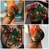 Adesivos de tatuagem temporária coloridos flores e folhas enroladas no braço tatuagem falsa moderna à prova d'água e de longa duração