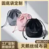 Bolsa Redonda de Veludo com Logo Personalizado, Bolsa Redonda com Fundo para Joias, Bolsa com Cordão, Bolsa Redonda de Armazenamento para Cosméticos com Cordão