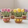 Enfeites de Lã Flor Eterna Bonsai Jardinagem Tulipa da Sorte Crochê à Mão Planta em Vaso de Lã Simulação Decoração de Sala de Estar