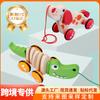 Brinquedo educativo de madeira para crianças pequenas, com corda em formato de caracol, crocodilo e cachorrinho, ideal para bebês de um ano de idade.