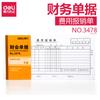 Deli 3478 formulário de reembolso de despesas 35k contabilidade financeira contabilidade documento de reembolso conta 75 peças 210 * 105mm