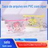 Estojo com Zíper de Papelaria Desenho Animado Bolsa Personalizada para Armazenamento de Documentos Bolsa de Papelaria à Prova d'Água Bolsa para Armazenamento de Provas PVC Transparente