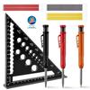 Régua triangular de 45 graus, liga de alumínio preta, 7 polegadas, chanfrado 3D, medição de furo, transferidor, lápis mecânico, recarga de marca
