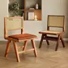 Cadeira de Jantar de Madeira Maciça em Rattan Vento Antigo e Silencioso Varanda Cadeira de Chá Cadeira de Encosto de Cafeteria Cadeira de Rattan de Designer Sem Braços