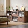 Armário de TV de madeira de cerejeira, sala de estar simples nórdica, armário de piso de madeira maciça, armário de vidro Changhong, armário de porta deslizante, conjunto completo