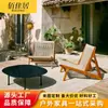 Sofá-Cadeira de Corda de Teca para Exterior Nórdico Pátio Villa Terraço Pousada Lazer Pastoral Móveis de Madeira Maciça Designer