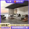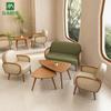 Sofá de Rattan Nórdico Hotel B&B Móveis de Teca Pátio Externo Madeira Maciça Mesa de Centro Vazada Conjunto Sofá Externo