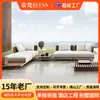 Sofá de Madeira Maciça para Exterior Estilo Nórdico, Combinação de Sofá de Rattan para Pátio de Villa, Jardim, Móveis de Sofá de Teca para Varanda de Alto Padrão