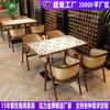 Conjunto de Mesa e Cadeiras de Rattan para Restaurante Temático do Sudeste Asiático com Cadeiras de Jantar de Ferro, Mesa de Jantar com Tampo de Rocha, Conjunto Comercial para Restaurantes