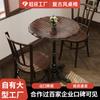 Mesa de Jantar e Cadeira de Madeira Maciça em Estilo Medieval Combinação Mesa Redonda de Aço Carbono Mesa Redonda de Luxo Leve com Prato Giratório Mesa de Jantar para Apartamento Pequeno