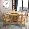 Novo Conjunto de Mesa Redonda de Jantar e Cadeiras em Madeira Maciça Estilo Chinês Mesa Redonda Doméstica com Mesa Giratória Mesa de Jantar de Hotel Restaurante Mesa de Refeição