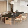 Mesa de Jantar Grande em Madeira Maciça Estilo Mid-Century Wabi-Sabi Mesa de Escritório Tudo-em-Um para Casa Mesa de Chá Retangular Retro Preto